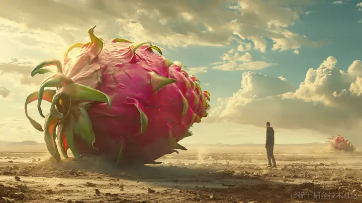 一个男子与巨大的火龙果站在泥土中央,以视频蒙太奇风格呈现,亚历克桑德·代内卡,浅粉和淡琥珀色,弗洛拉·博尔西,高质量,惠斯勒风格,费拉尼亚 P30