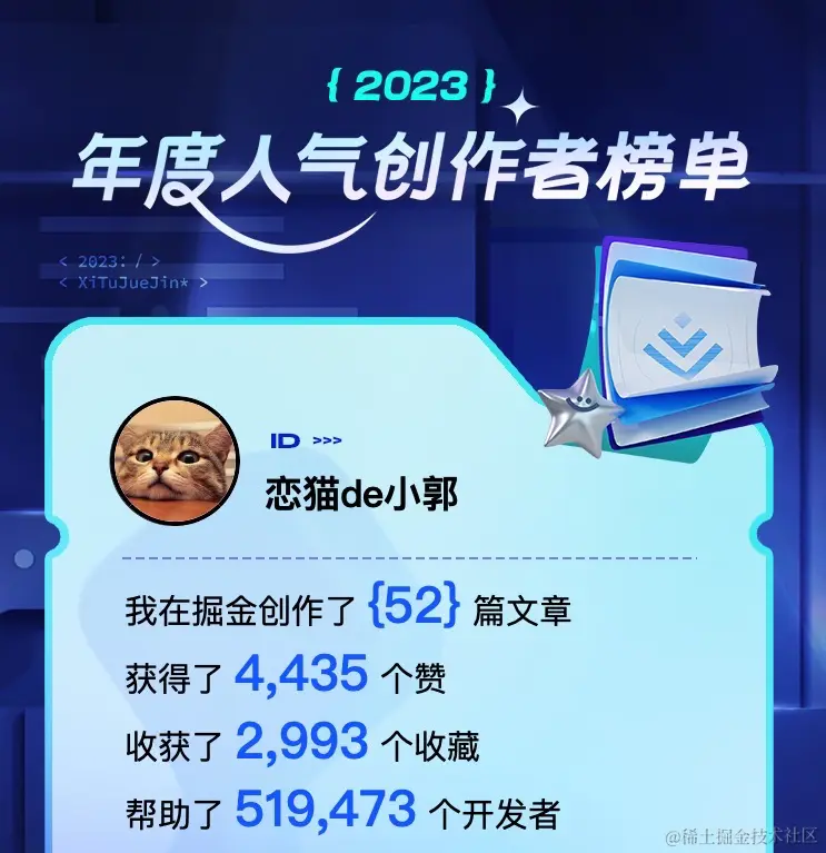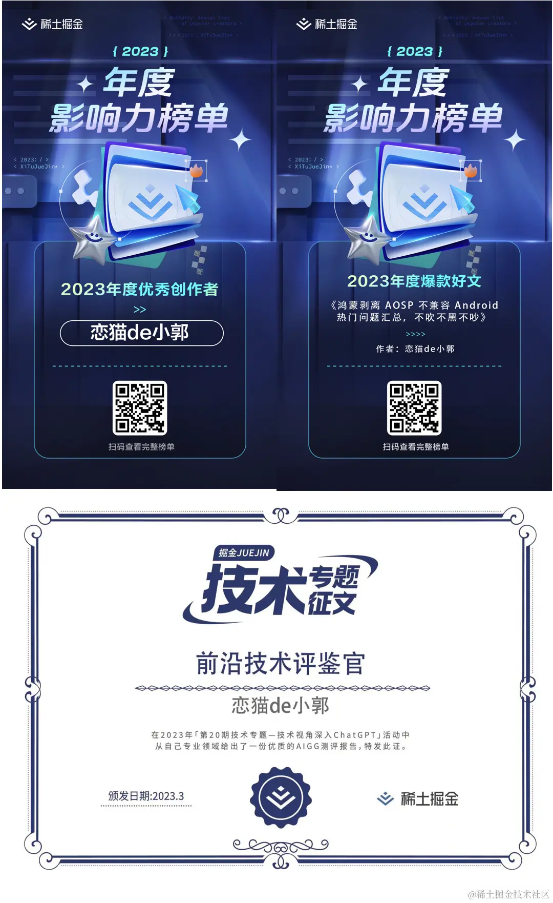 当然,2023 虽然行情不好,但是既然混社区,还是得有个”像样“的总结,2023 这一年大概写了 54 篇文章,平均下来一个月 4.5 篇,四舍五入大概一周能有一篇,我想,在 App 客户端领域如今还保持这样的产出应该也不多了,毕竟这个领域已然没什么“油水”,老韭菜们如今都躺着,新韭菜也没几茬,虽然对我来说主要还是兴致,但是 2024 是否还能持续产出,我对自己抱有很大质疑。