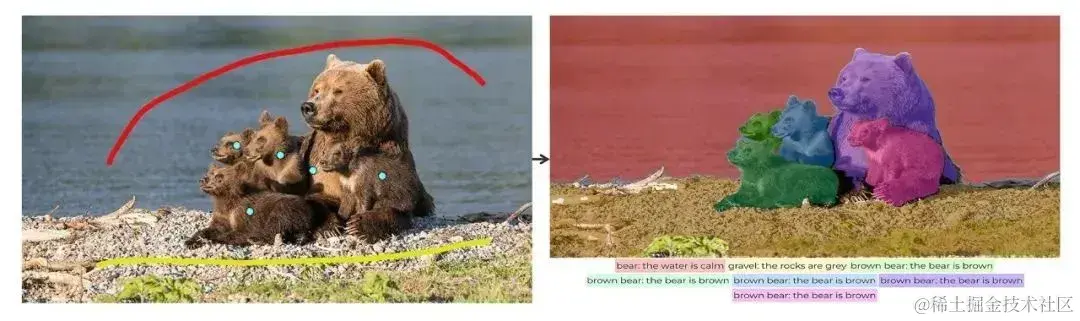 简单点击或涂鸦图片中感兴趣的目标,TAP 即可自动生成目标区域的分割掩码、类别标签、以及对应的文本描述,实现了一个模型同时完成任意的分割、分类和图像描述。