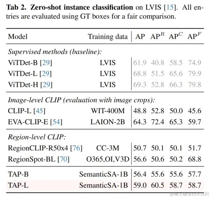 模型训练:TAP 模型在 256 块寒武纪 MLU370 加速器上进行预训练,并行优化可提示分割与概念预测两个任务。给定一张图片及一个视觉提示,TAP 模型将感兴趣区域表示为一个掩码标记和一个语义标记。基于语义标记,扩展一个 MLP 预测器可实现开放词汇分类任务。同时,扩展一个轻量化的自回归文本解码器即可实现文本生成任务。