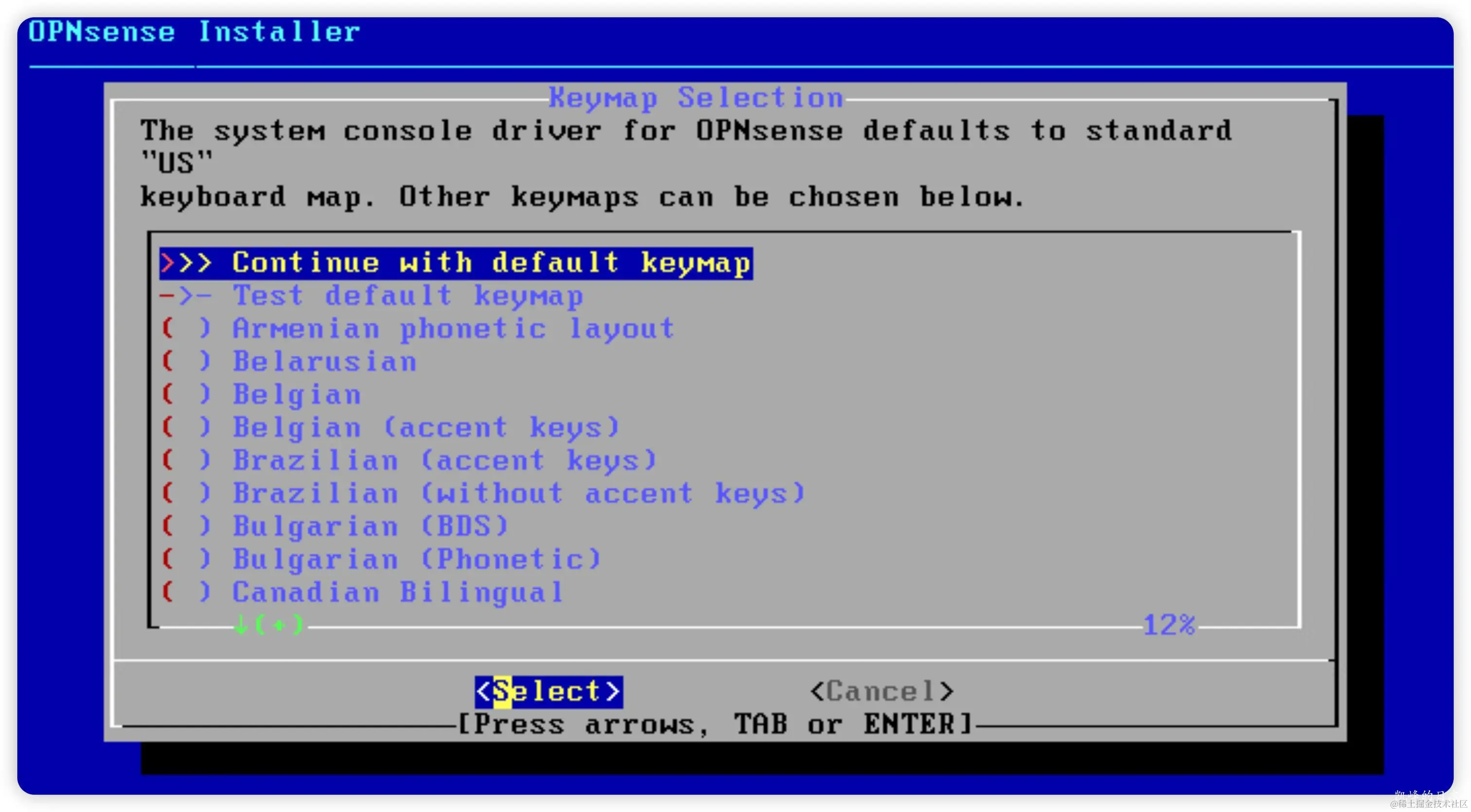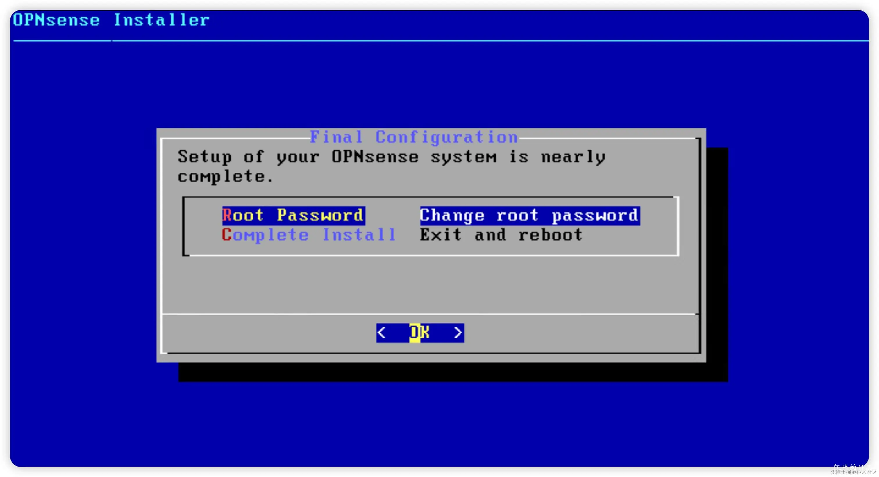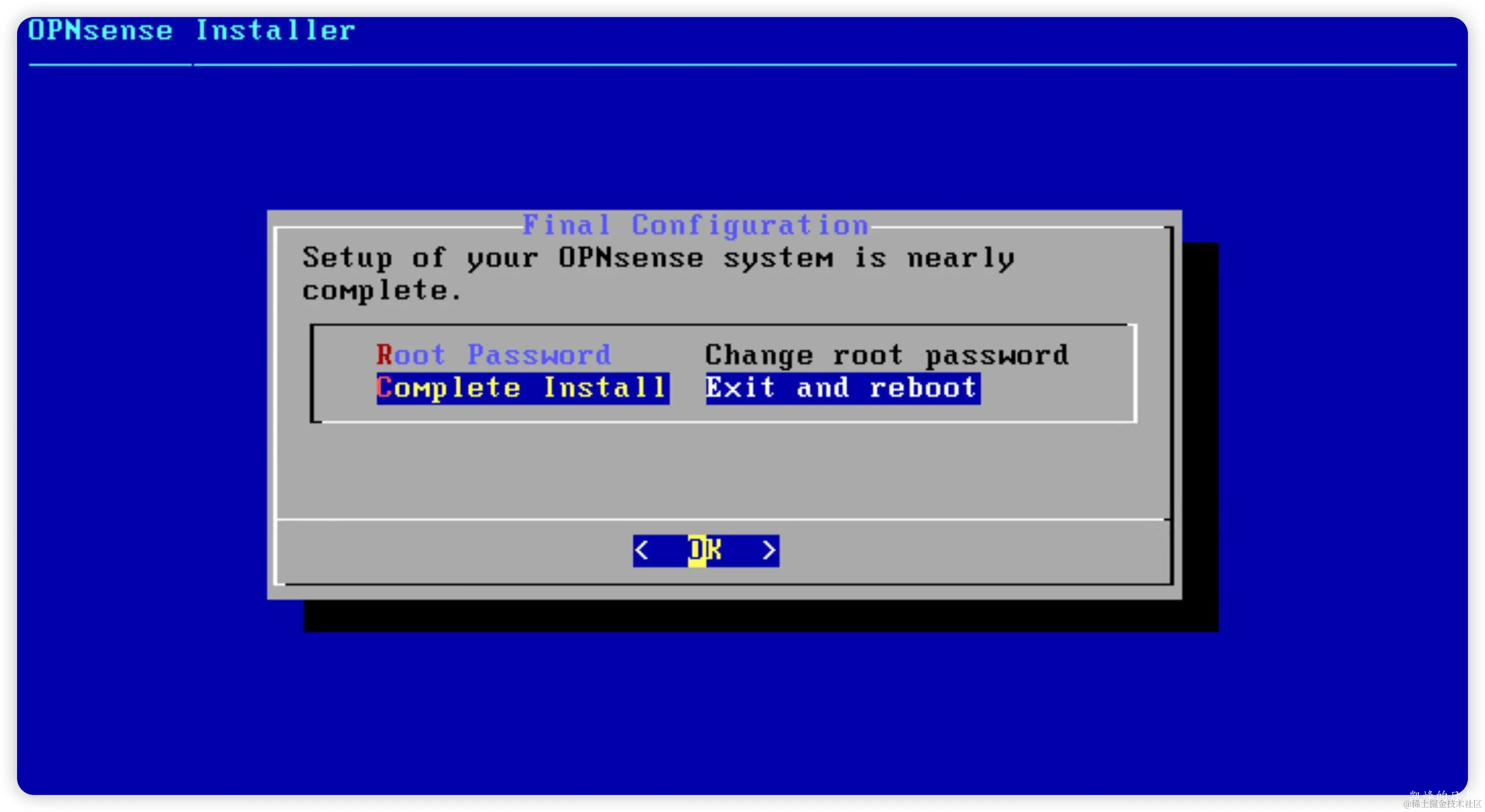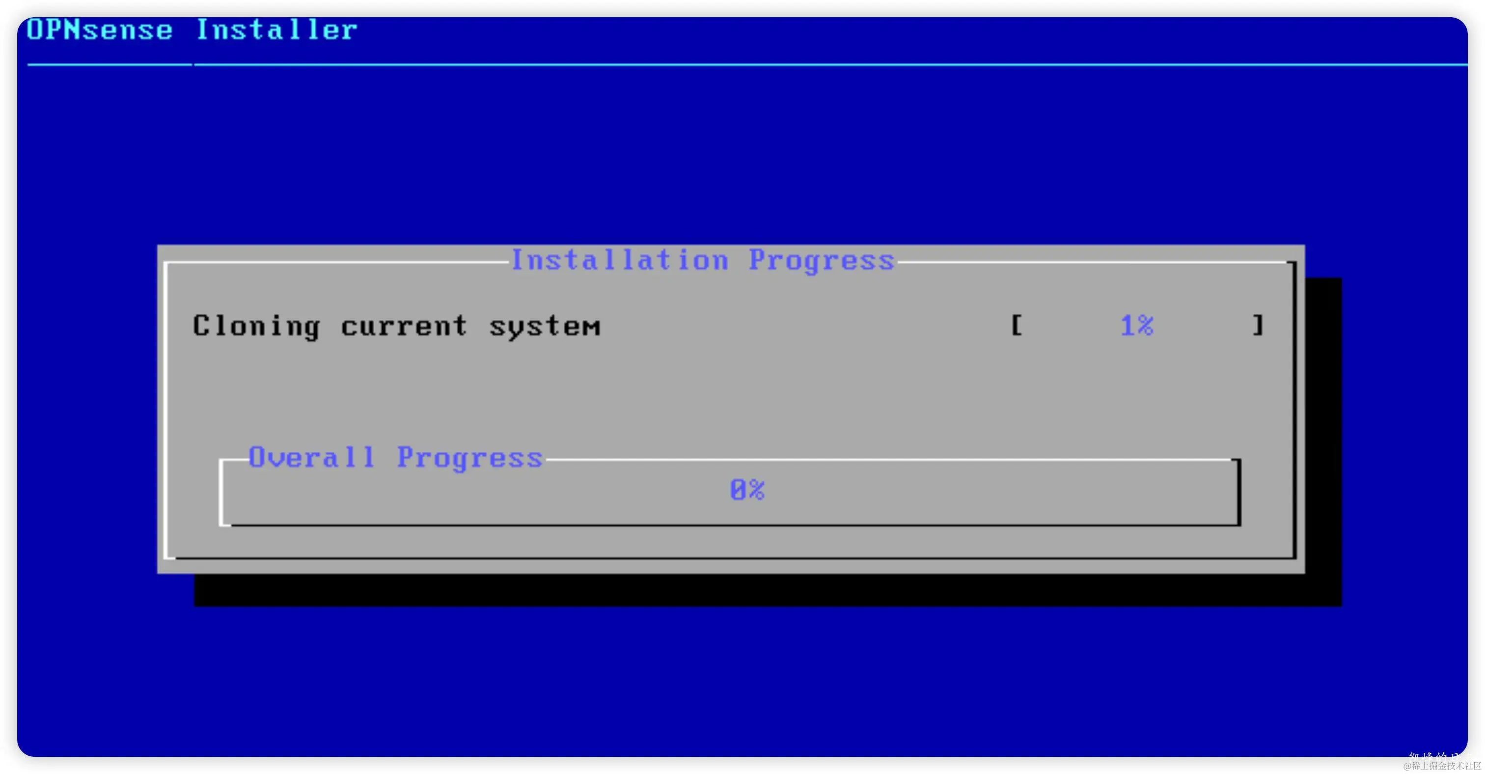 等待加载完成后,进入登录状态,这并不代表已安装完成。这里需要输入安装账户的用户名“installer”和密码“opnsense”。进入到安装界面!