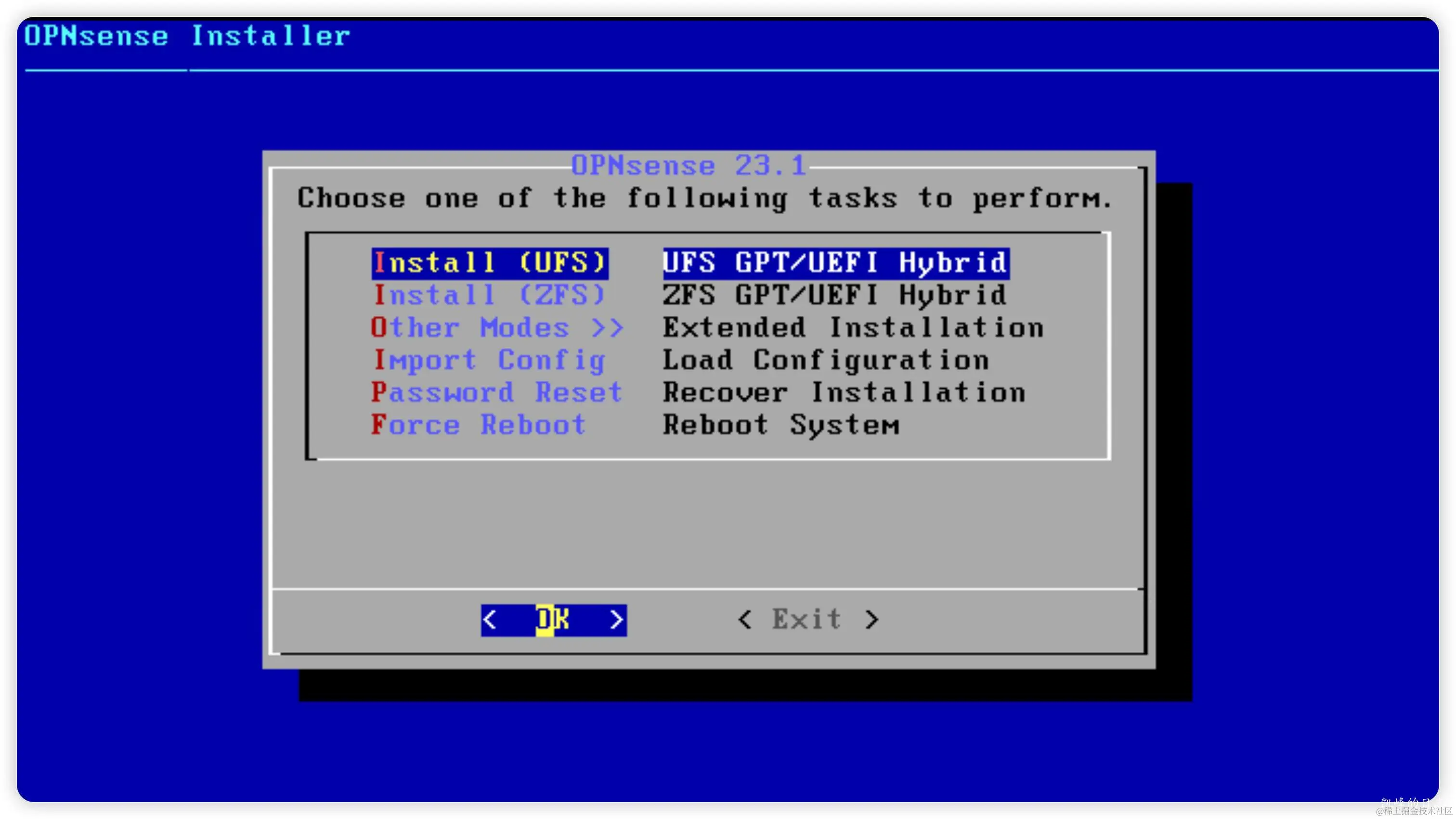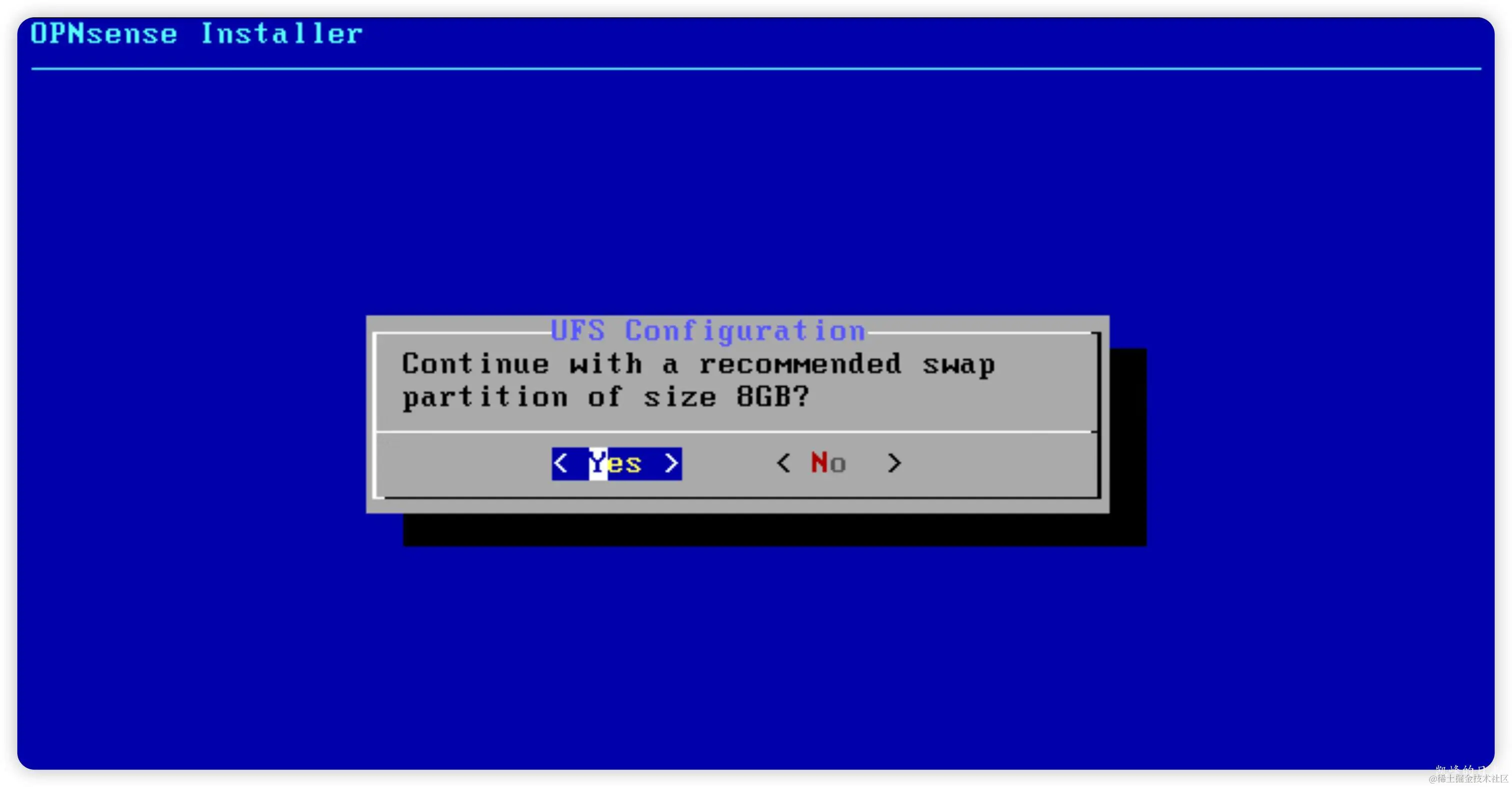 第二步:选择文件系统,在 FreeBSD 论坛,普遍看法是UFS 优于 ZFS。ZFS 设计复杂,占用资源相对较多。如果在资源足够情况下ZFS 在稳定可靠方面是最佳选择。