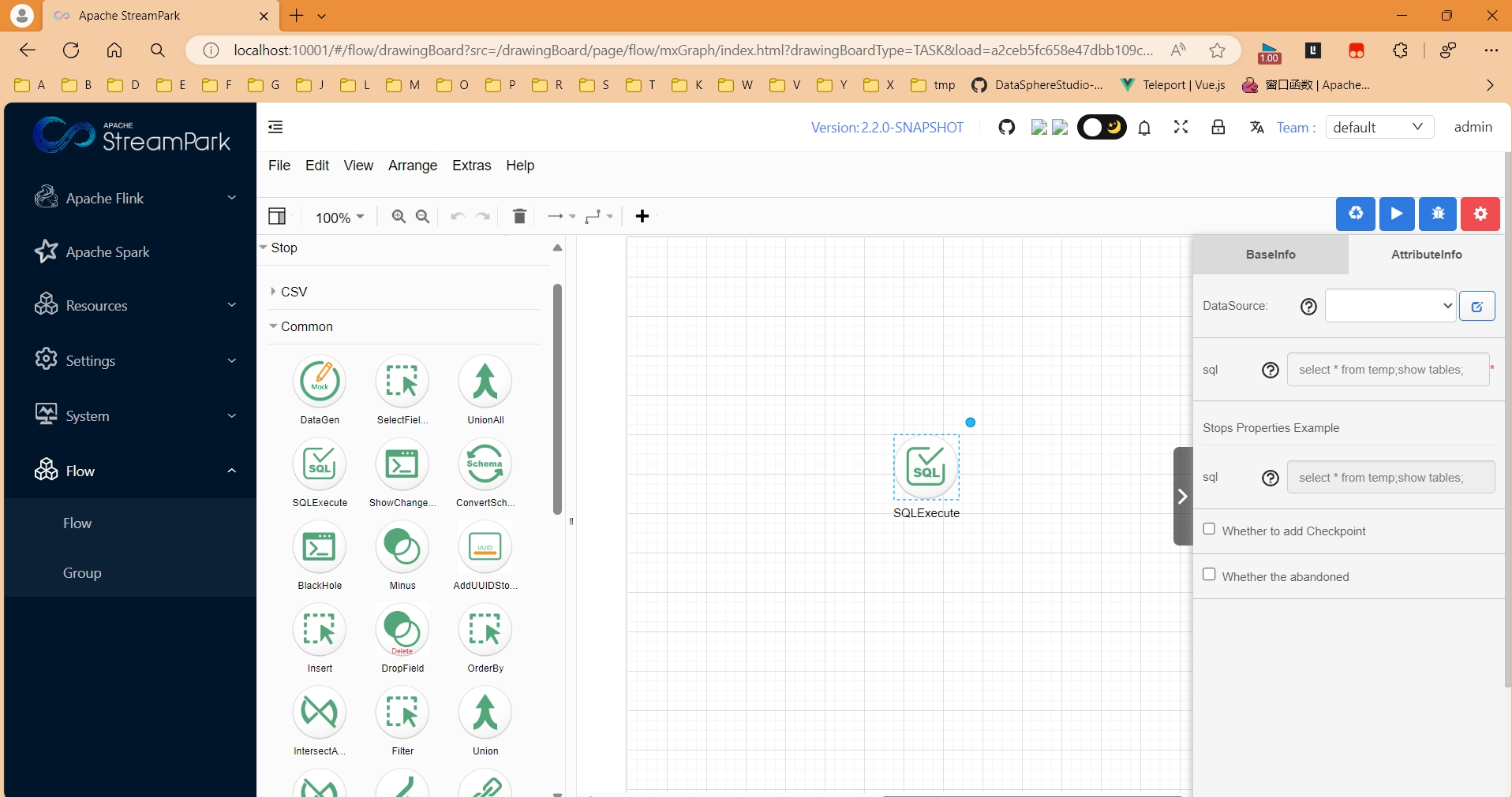 当然,纯flinksql组件算子已经实现,可以直接在节点上编写flinksql脚本