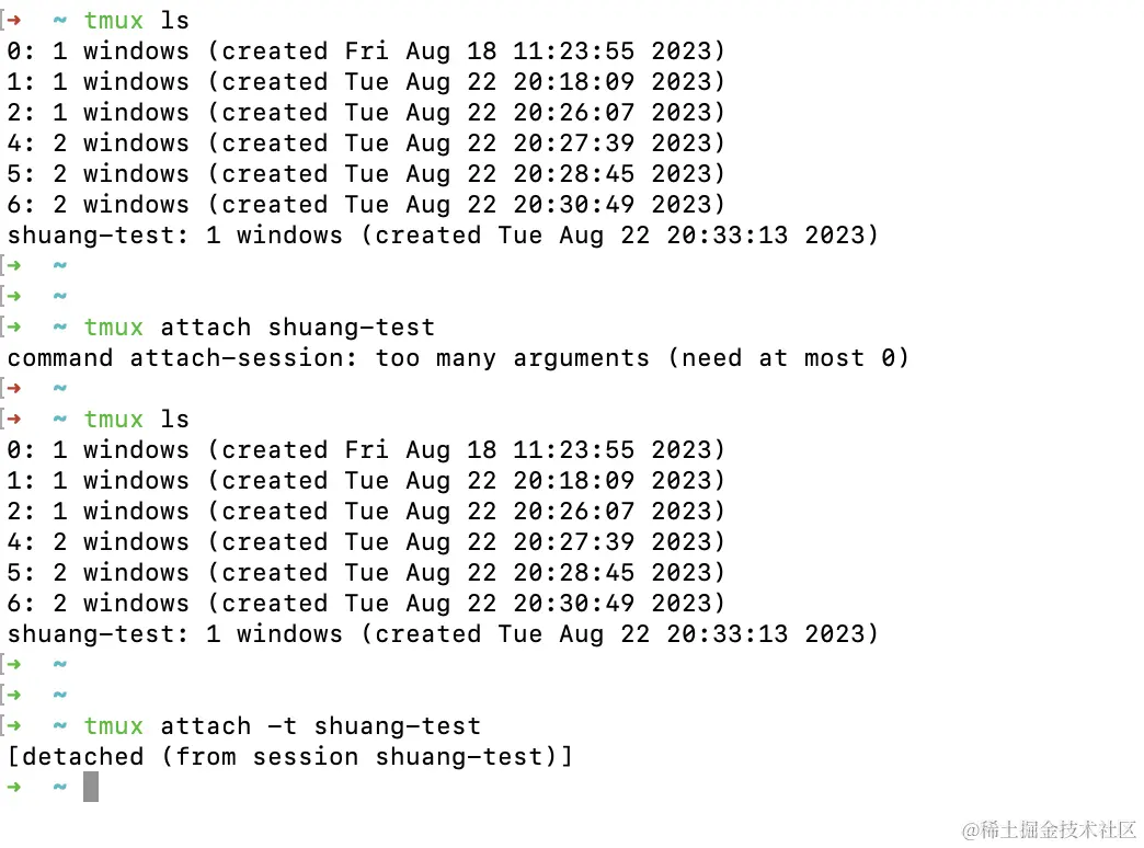 - 4.下次使用时,重新连接到会话tmux attach-session -t my_session。