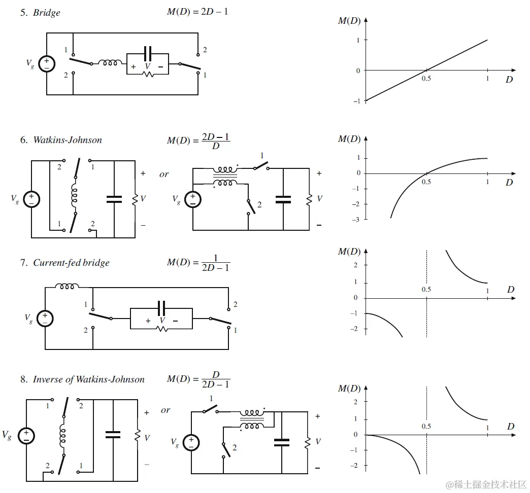 这一章就讲电路的变形,移位和简化. 例如把输入输出掉头就变成boost converter. casecode converter,简化电路我们就能得到buck–boost, C´uk converter.