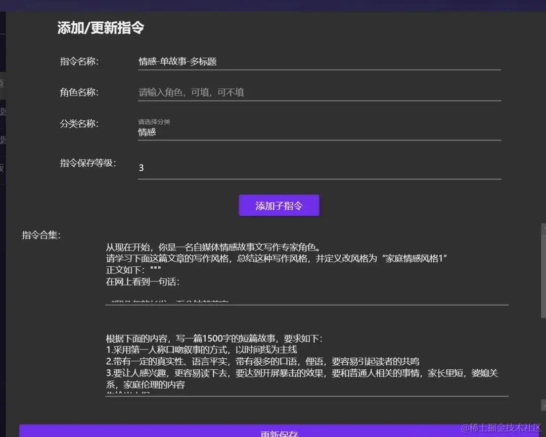什么是多级指令,其实就是和我们用gpt聊天一样,先让他做什么,再干什,最后在干什么。 我的多级指令大概就是这样一个流程: 1.先让AI根据一篇原创的优质的故事,总结出写作风格。 2.根据写作标题: {title} 和写作风格,制定写作大纲。 3.根据写作大纲和写作风格,先写xx字的文章 4.故事续写… 等你这一套指令稳定以后,每天写作时候只需要修改原创的优质参考故事。这就是小技巧,因为AI一个指令用多了,会导致效果不好。 再说下这块的注意点,给AI找参考文章时候一定要注意不要太敏感的信息给他。否则可能会导致你的账号被封。 文档排版+图片处理 文章写完了最不爽的就是没有图片 于是我决定把这个功能支持上去。内测中。 没什么好说的 文章发布 说下注意点,情感故事,太敏感的内容你就不要发了,容易违规。 我一天发布30篇文章需要多久? 30分钟。 怎么做到的,肯定软件批量,手搓要累死。 既然这么效率,那么想赚大钱的,就可以批量矩阵的搞,一个号日入50,20个号就是1000元。并且我看了我的文章还没有爆的,全靠的是怼量。 怼量也不是盲目的怼,高质量的怼量,才能达到这个效果。我们软件可以帮你实现高质量文章。就是这么牛。