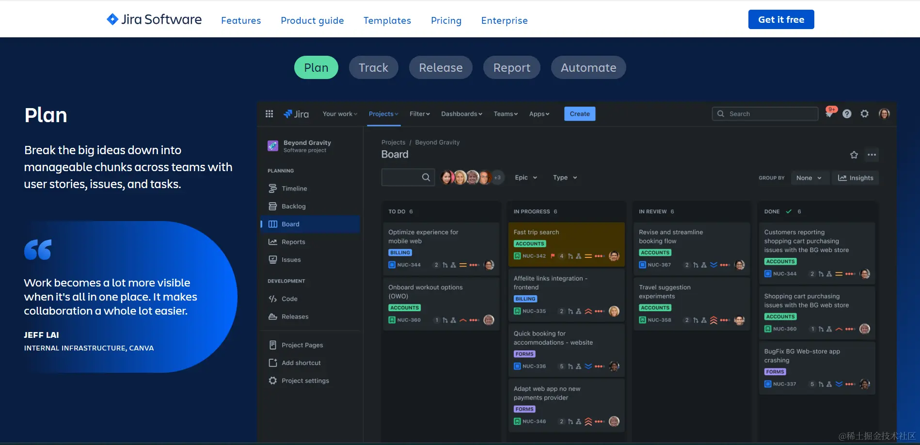 JIRA 是 Atlassian 公司出品的项目与事务跟踪工具,被广泛应用于缺陷跟踪、客户服务、需求收集、流程审批、任务跟踪、项目跟踪和敏捷管理等工作领域。