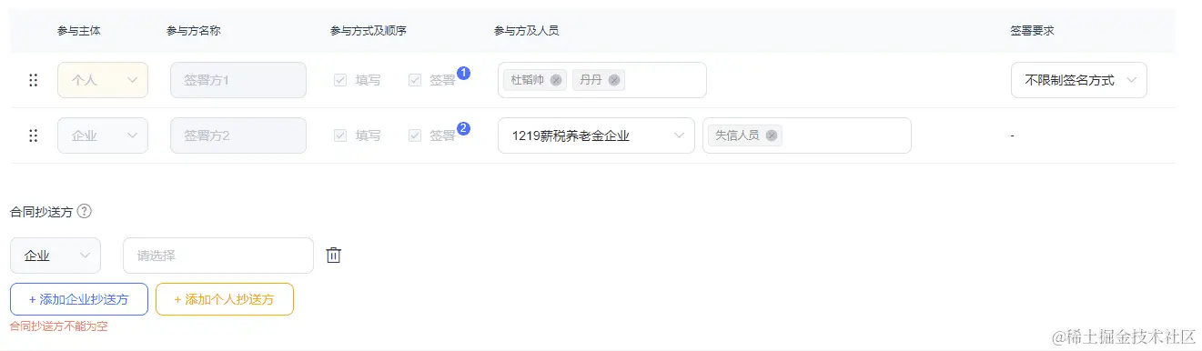 具体的业务场景是一个选人的下拉列表,这个下拉列表要支持多选和搜索功能。这个需求还是挺常见的,并且element-ui的select提供了对应的属性可供我们完成多选及搜索的效果。于是我就欻欻欻的实现了一个,实现效果如下。(搜索功能就是在select框内输入对应的人名或者手机号,这里先不展示,主要看选中之后的效果)