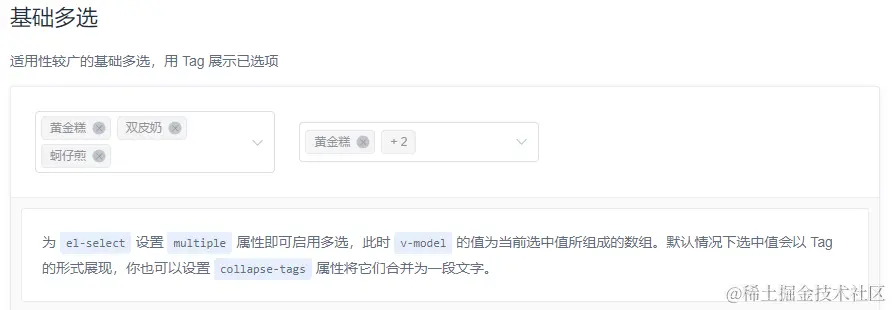 collapse-tags属性只能展示一个内容,并且选择多个+1 +2这种展示不符合我们的要求,在collapse-tags属性的基础上改造比较困难,所以我们要去掉collapse-tags属性。