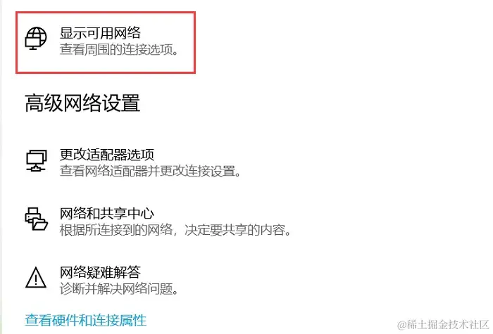 2.点击【打开网络和Internet设置】,点击【显示可用网络】,找到可用的无线网络,点击连接;