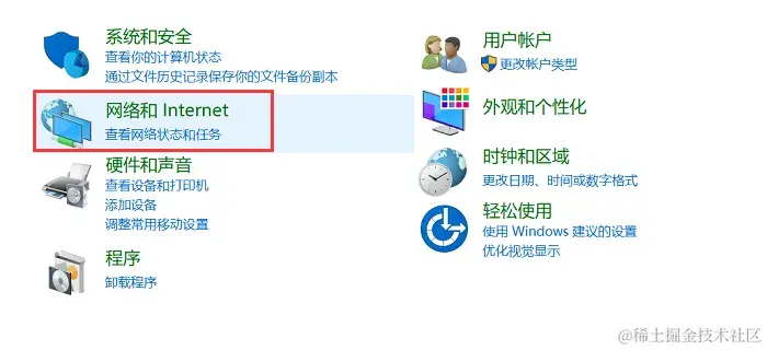 - 在【控制面板】中找到【网络和Internet】下的【查看网络状态和任务】 ,并将其打开;