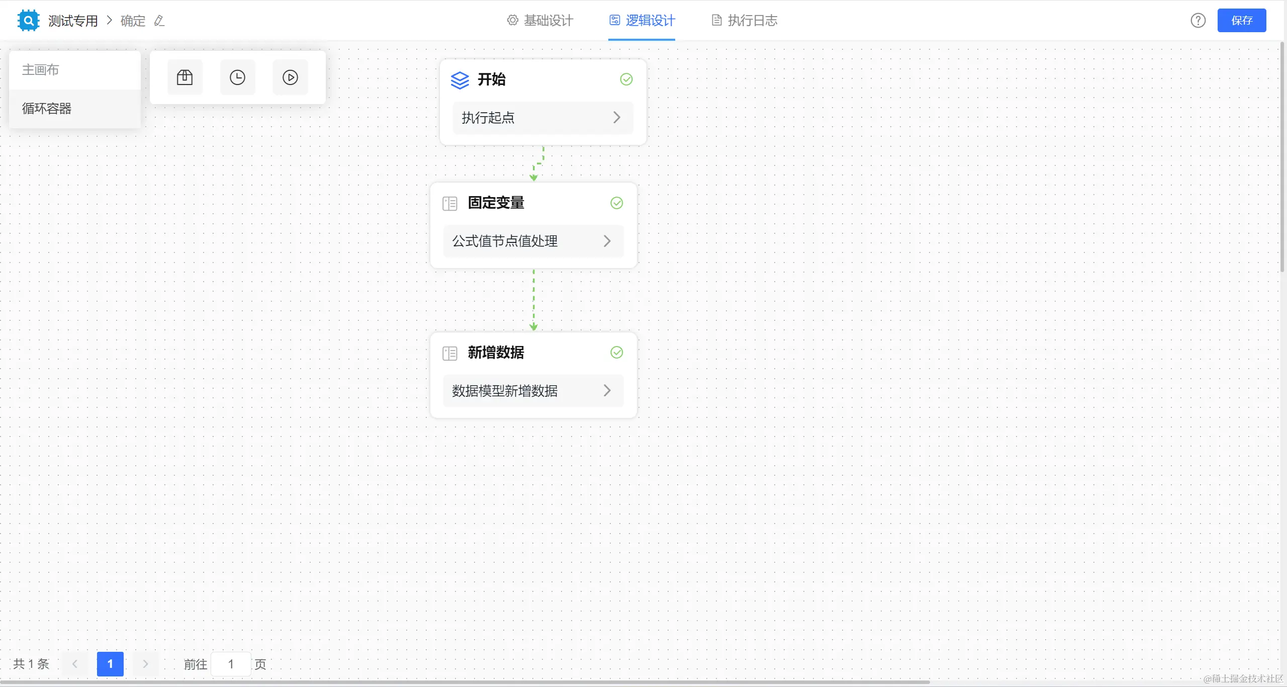 然后添加循环容器节点对文件解析的数据进行循环取值,再在循环画布里添加新增数据节点新增数据。