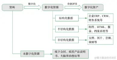 当然,数字化资产还有其他分类标准,如数据来源(企业内部产生、外部获取)、时效性(实时、准实时、批处理)、结构特性(结构化、半结构化、非结构化)、生命周期阶段(在线、近线、离线、销毁)等。