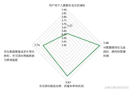 企业需要更严格的事前防范机制来保护数字化资产隐私和安全。我们的调研显示,企业“对数据使用有完备授权、使用和管理机制”排名第一; “发生数据泄露或丢失等风险时,有完善的措施将损失降到最低”排名第二;企业“有完善的数据加密、传输和审核机制”,以及“用户对个人数据有充分控制权”得分相对较低(见图8)。