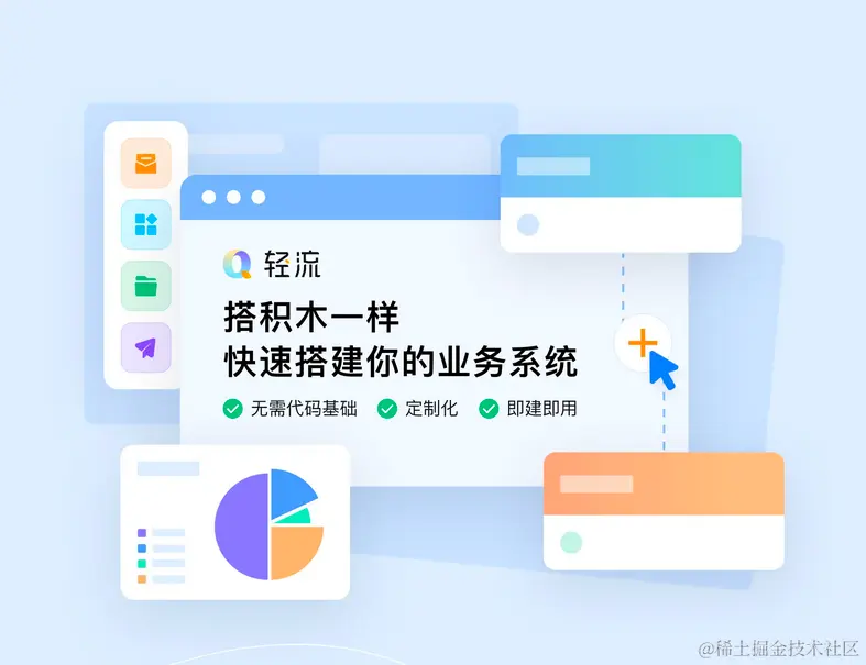 轻流提供一站式业务管理平台,用无代码的方式节省90%的系统定制时间。可用于搭建 进销存、客户管理、OA协同办公、项目管理、设备巡检、生产管理等。 其无代码产品有:表单引擎、流程引擎、门户引擎、报表引擎、数据引擎、自动化引擎。