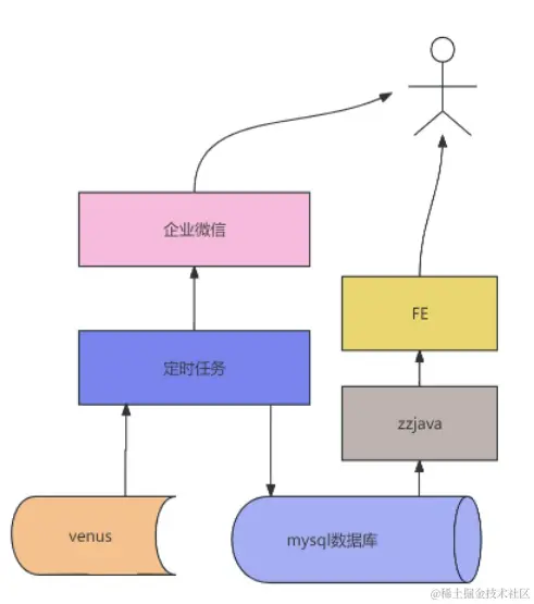 采用定时任务定时对venus服务统计出的异常类型进行定制化统计,将需要处理的异常存入mysql数据库表,并将本周期的统计情况及反馈上个周期的处理情况通过企业微信群机器人在群内通知。通过前端在页面上展示各业务线需要处理的异常数据,实现统计数据的平台化。