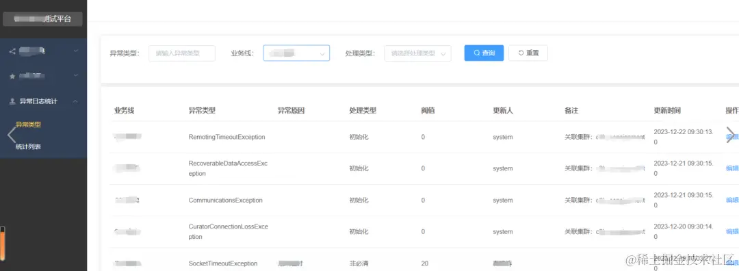 异常类型维护到单独的页面,用于维护异常error的处理类型和统计阈值,实现基于日常的统计结果,灵活调整统计规则。