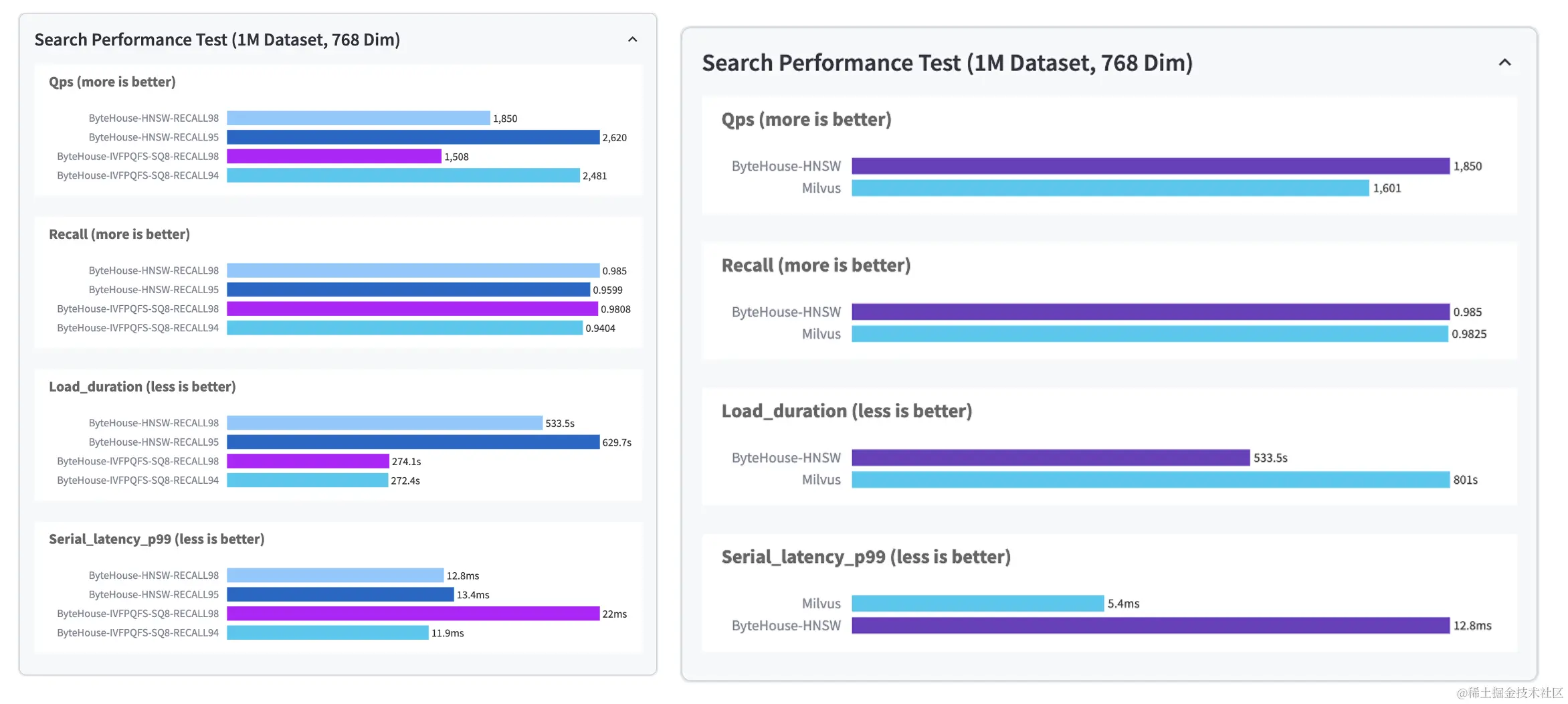性能优化一直是ByteHouse核心探索方向之一,以满足不断增长的数据处理和分析需求。不仅仅是向量检索技术,通过持续的研发和创新,ByteHouse还在查询分析、数据导入等多个方面极致优化,取得了显著的性能提升,在降本增效基础上,持续帮助企业更好地在数据驱动下实现加速决策效率。