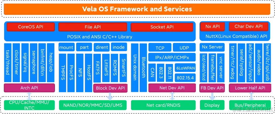 - 高效性能:Vela 基于 NuttX 内核,具有高实时性、低功耗、低延迟等特点,适用于各种资源受限的嵌入式设备。