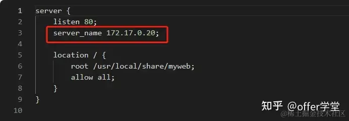 配置文件内容,我们需要首先获取知道自己的IP地址,将其用作 server_name