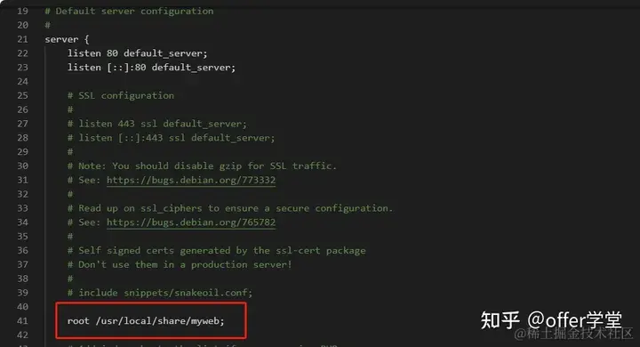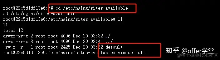 进入 /etc/nginx/sites-available 目录,然后修改 default 默认配置文件中的 root 根目录