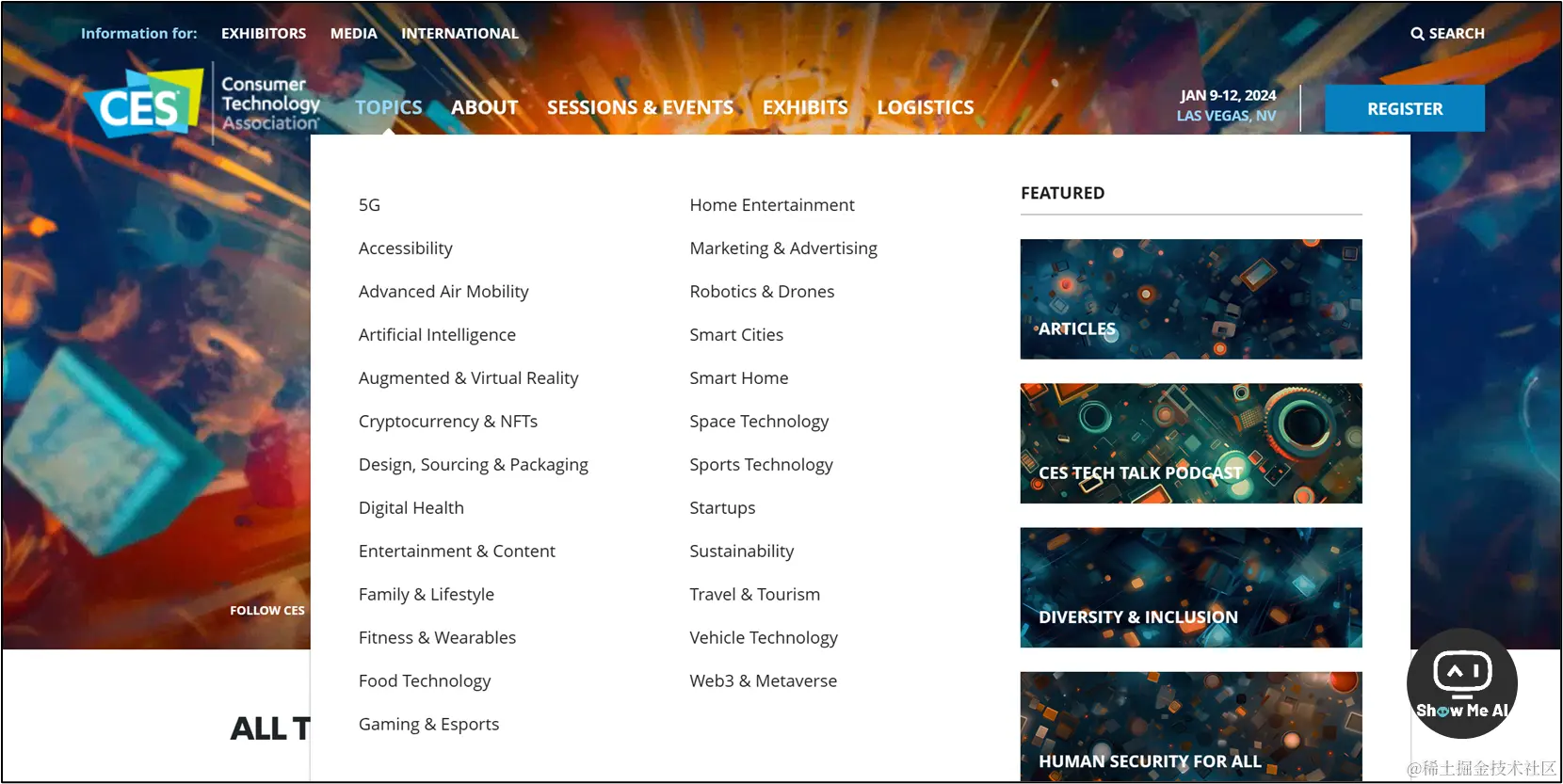 今年的 CES 开始啦!2024年1月9日至12日,美国拉斯维加斯将迎来全世界厂商、从业者和科技爱好者,交流技术和产品的未来规划和发展趋势。今年展会的热门主题包括人工智能、虚拟现实、数字健康、机器人、智慧城市、Web3等等 (👆 具体查看上方配图和官网)。