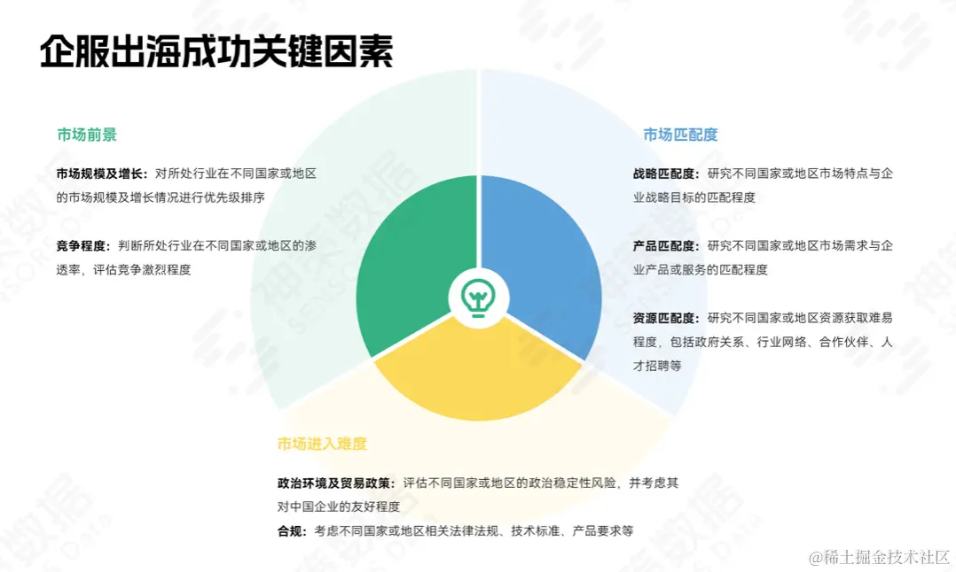 最后,报告从市场前景、市场匹配度、市场进入难度三个维度梳理了企服出海成功的关键因素。