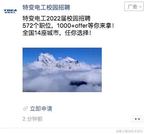 除了内推,特变电工还在思考「如何利用外部渠道达成雇主品牌的大规模传播」,让校招人才「知道特变」、「了解特变」再「选择特变」。考虑到如今的年轻人都活跃在社交平台中,特变电工决定趁势社交媒体,借助朋友圈广告达成雇主品牌的百万级曝光,并依托院校地址、年龄、兴趣行为等标签,将校招信息精准传达给电力和能源人才。