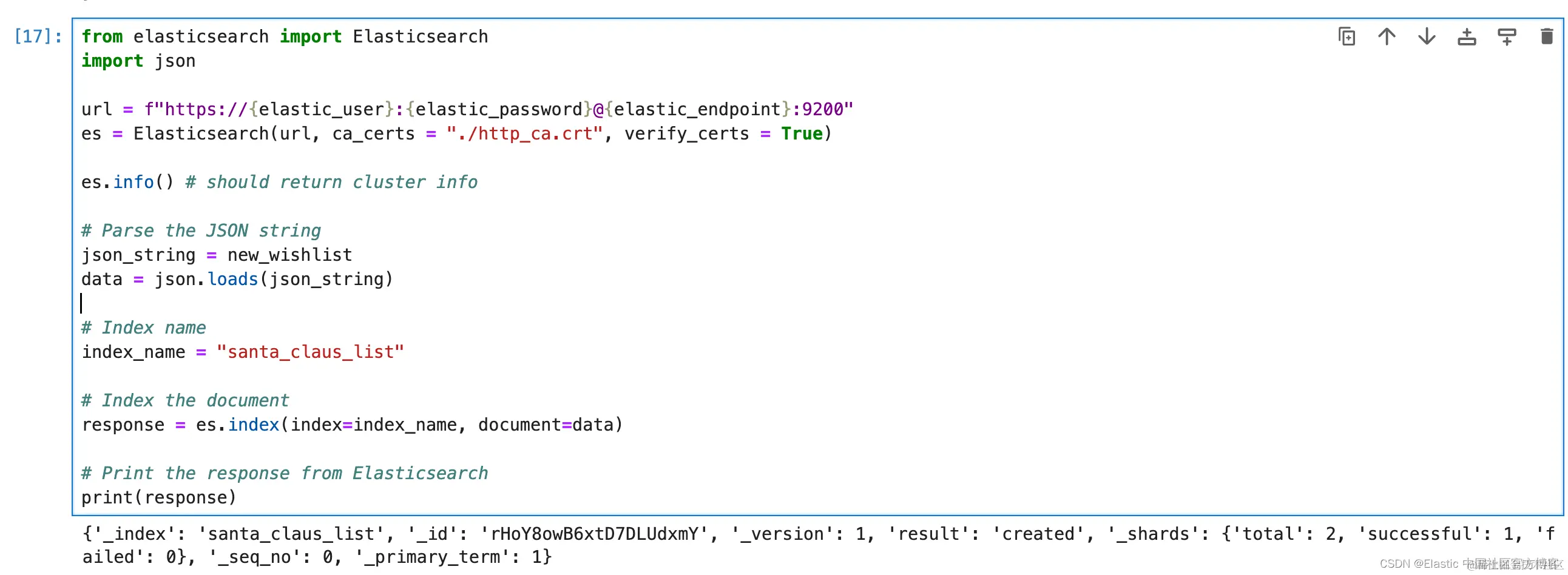 借助这一创新解决方案,圣诞老人不仅能够更高效地满足请求,而且还获得了对世界各地儿童的欢乐和希望的宝贵洞察,这一切都得益于人工智能、LangChain和 Elasticsearch 的力量。 今年的圣诞节注定会是最神奇、最井然有序的一个!