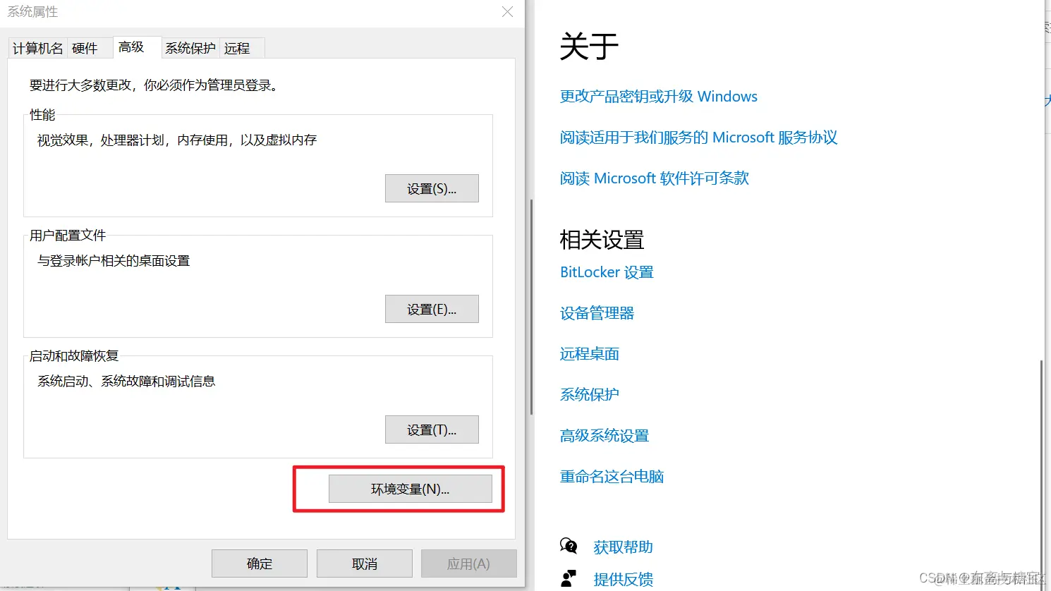 - 点击“环境变量”按钮,打开“环境变量”对话框
