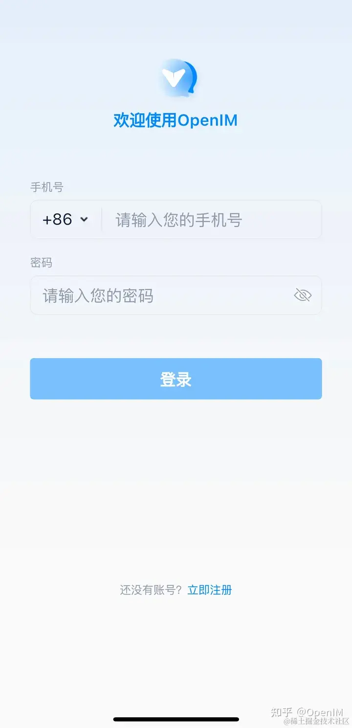 提示: 双击 OpenIM 后修改 IP 为服务端 OPENIM_IP 再重启 App。请确保开放相关端口,并在修改后重启 App。首次使用请先通过手机号注册,验证码默认为 666666。
