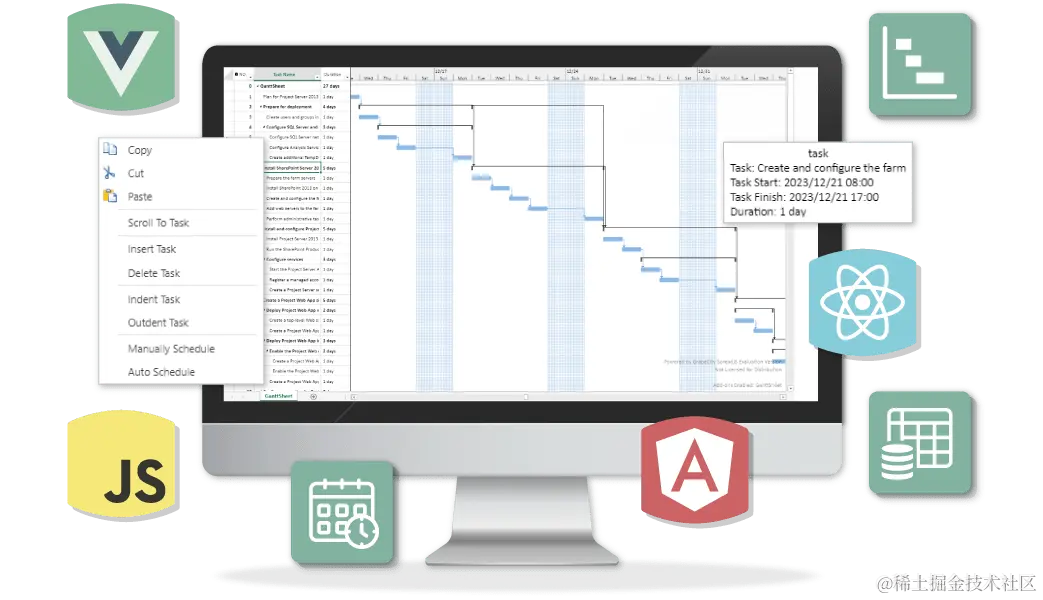 SpreadJS新增的甘特图插件允许创建工作分解、生产计划及计划进度等甘特图类型。是一个快速、数据绑定的 DataTable 视图,具有甘特图行为和电子表格用户界面。
