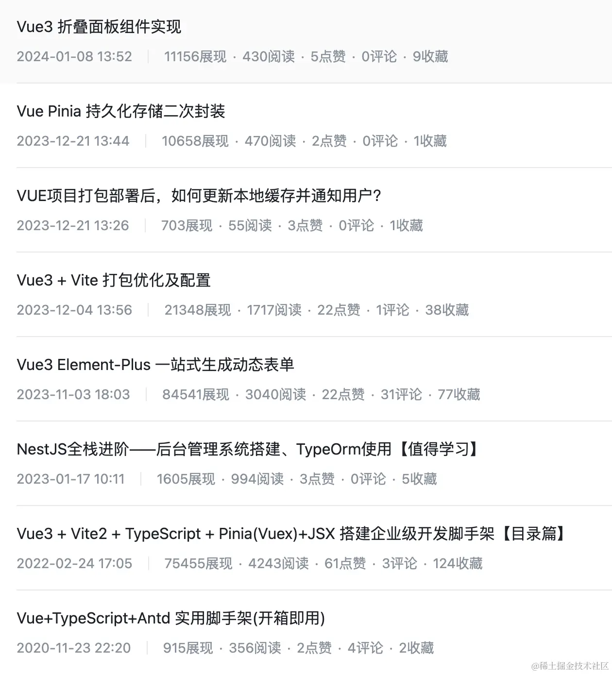 六、发表12篇掘金文章
