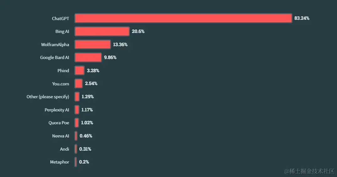 随着 ChatGPT 竞争对手扩大用户群,围绕新兴人工智能搜索技术的炒作还有增长空间;对于那些想在明年尝试的人来说,只有四种工具有 10% 或更高的选择率。