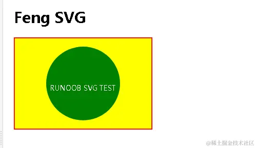 SVG的<circle>用来创建一个圆。cx和cy属性定义圆中心的x和y坐标。如果忽略这两个属性,那么圆点会被设置为 (0, 0),r属性定义圆的半径。 一个半径 80px 的绿色圆圈<circle>绘制在红色矩形的正中央 (向右偏移 150px,向下偏移115px)。 -