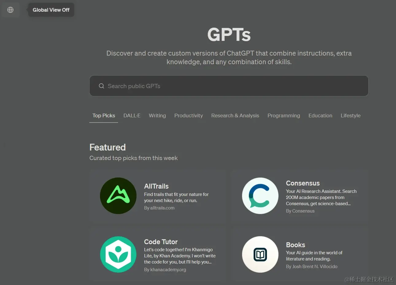 商店展示了我们的合作伙伴和社区开发的各种GPTs。浏览社区排行榜上的热门和流行GPTs,包括DALL·E、写作、研究、编程、教育和生活方式等各种类别。