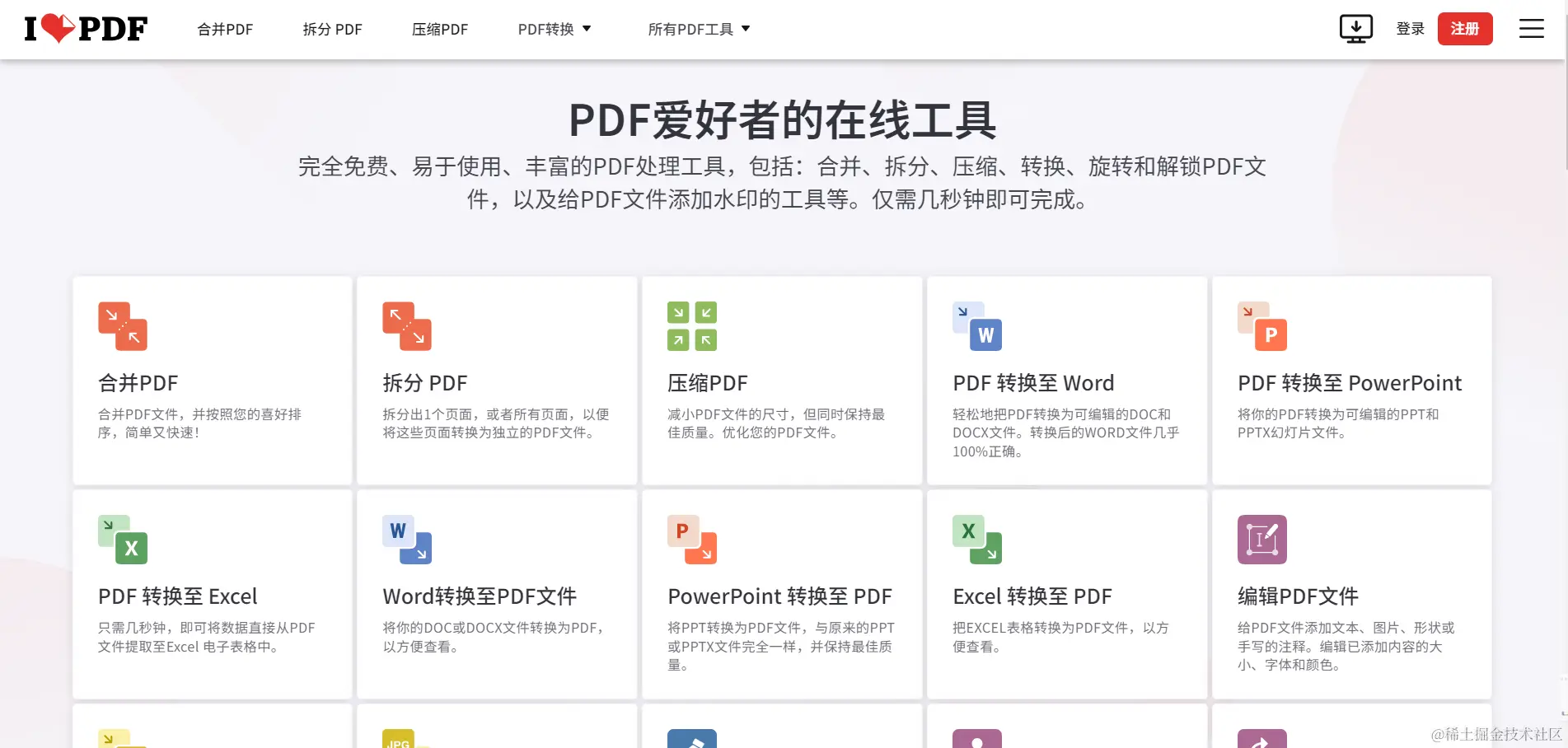 网站提供了多种在线和离线的PDF转换和管理功能,支持文件的重要性、安全性、效率和自由性。无需登录,完全免费在线。功能包括:合并PDF、拆分PDF、压缩PDF、PDF转换至Word、PowerPoint、Excel、JPG等。