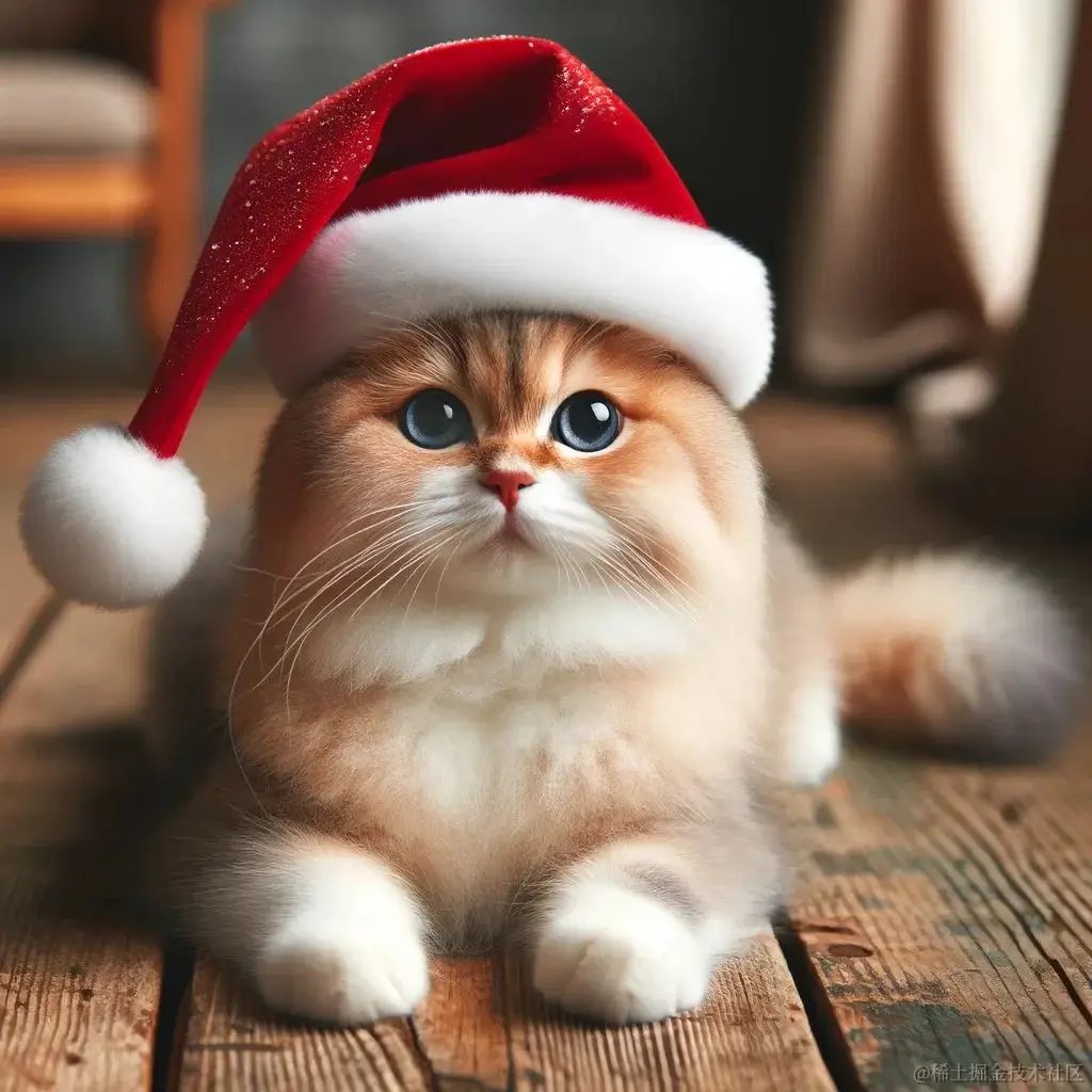 (戴着圣诞帽的猫咪,由 AI 生成)