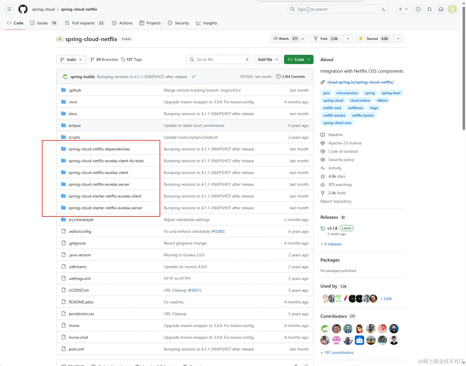约定:后续文章说的SpringCloudNetflix等同于SpringCloudEureka, 因为SpringCloudNetflix项目已经只剩下Eureka了。其它项目都已停止维护。详情查看Github: SpringCloudNetflix