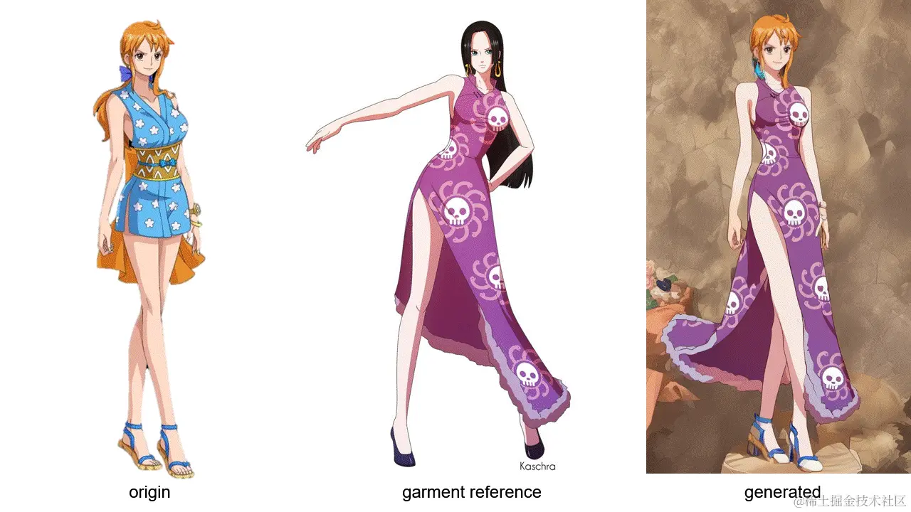强大泛化能力:模型具有强大的泛化能力,可以支持动画角色的新服装形象创建。
