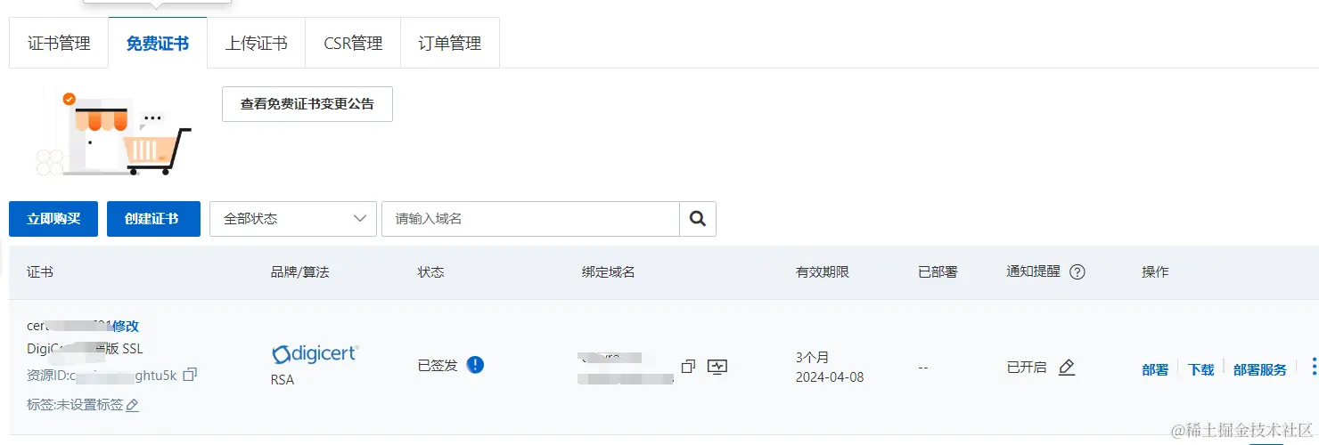 - 等待几分钟,证书会出现