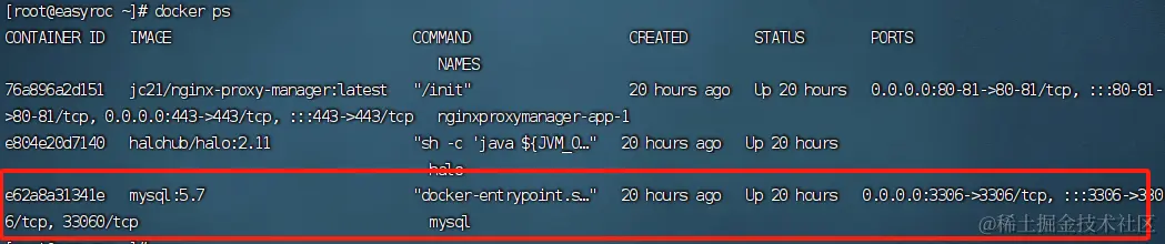 - 查询mysql容器是否在运行