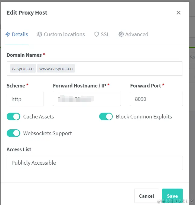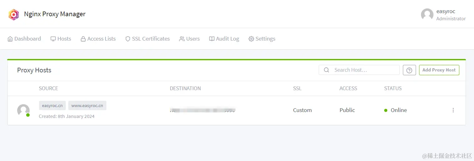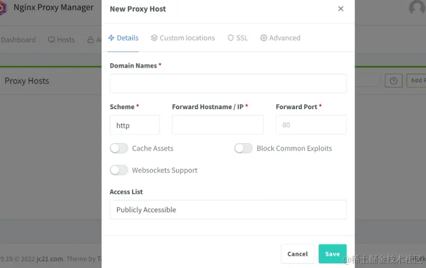 - Access List: 这个是 NPM 自带的一个限制访问功能,这边我们不管,后续可以自行研究。