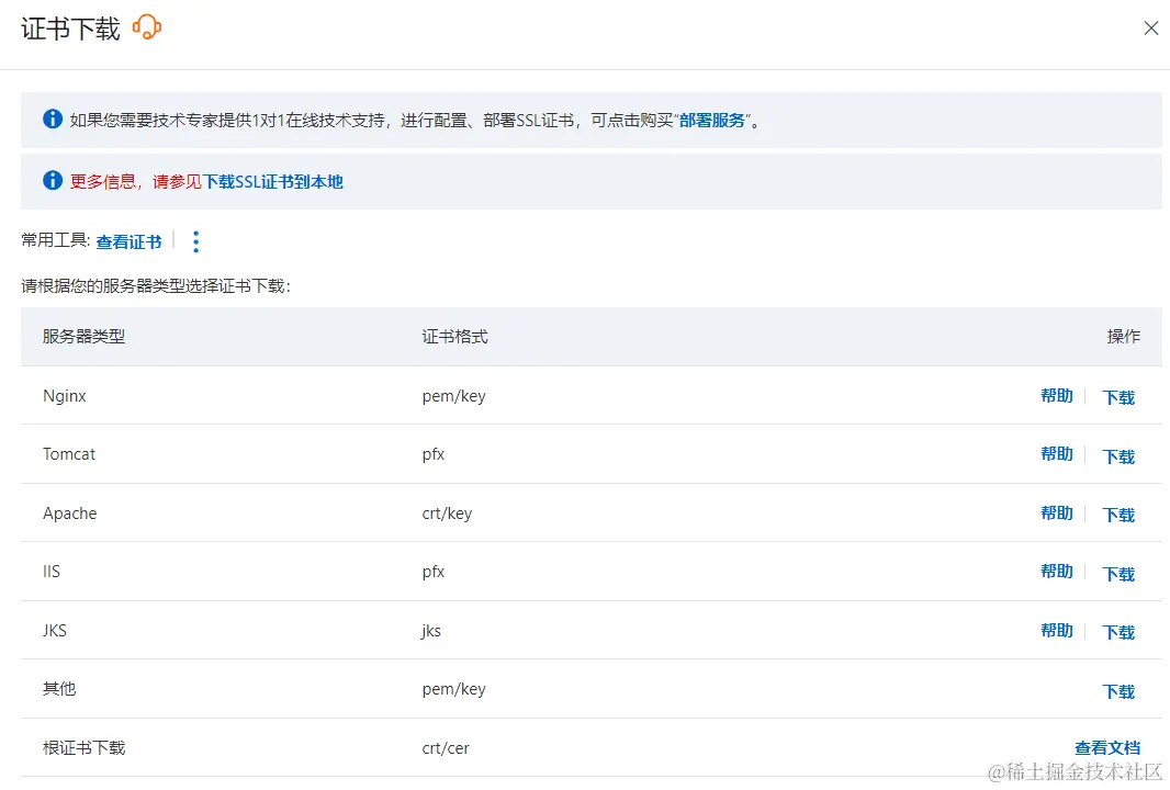 - 点击下载,下载Nginx的证书,会得到一个压缩包,里面有key和pem文件