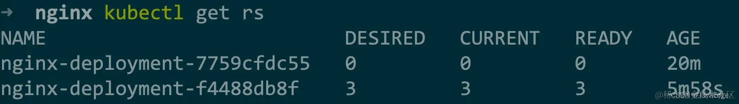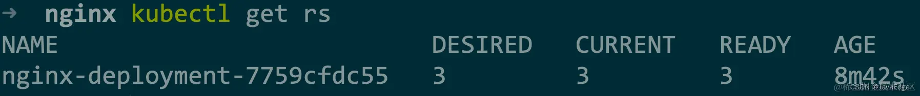 这随机字符串是pod-template-hash,该例里就是:7759cfdc55。ReplicaSet会把该随机字符串加在它所控制的所有Pod标签,保证这些Pod不会和集群里其他Pod混淆。