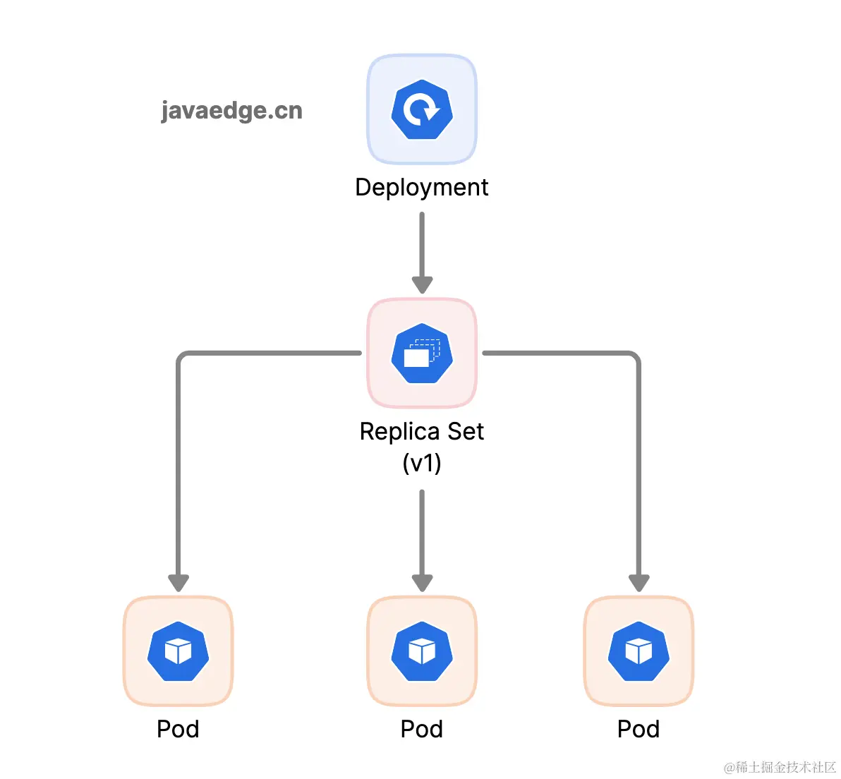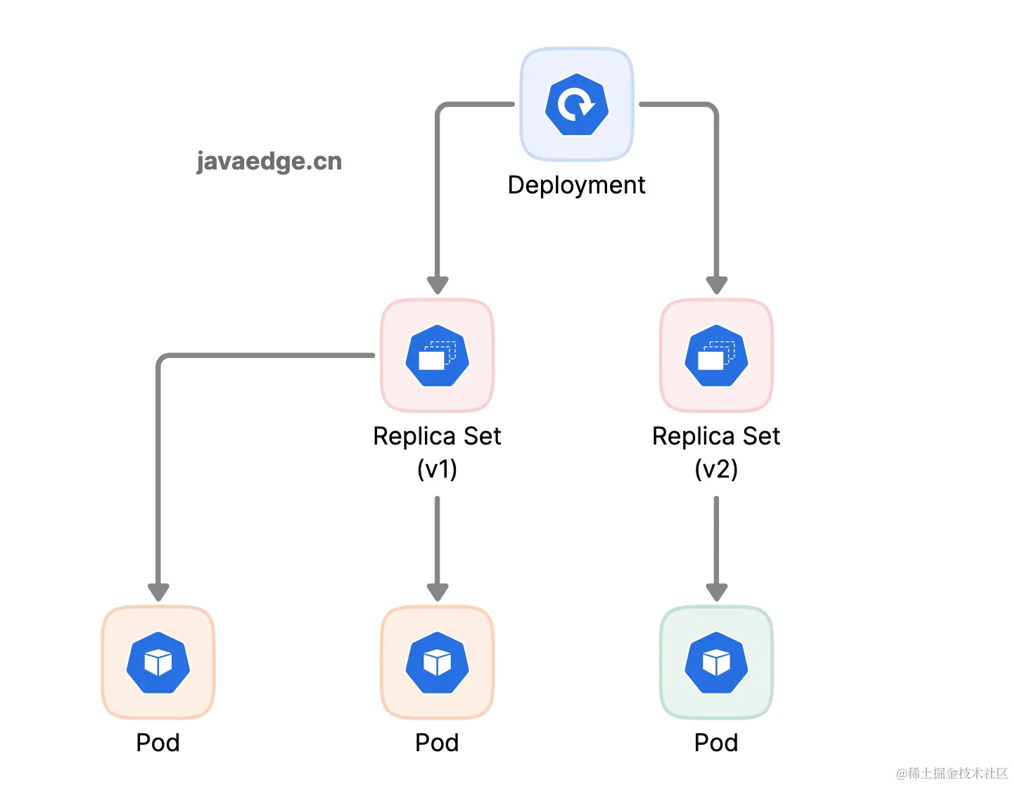 Deployment控制ReplicaSet(版本),ReplicaSet控制Pod(副本数)。