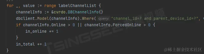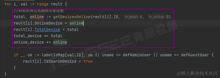 5)在代码中,首先传入的总设备数和在线数都为0,需要通过getDevicesOnline递归进行查找分组列表和设备列表,最终需要的是设备列表,并进行判断在线情况。