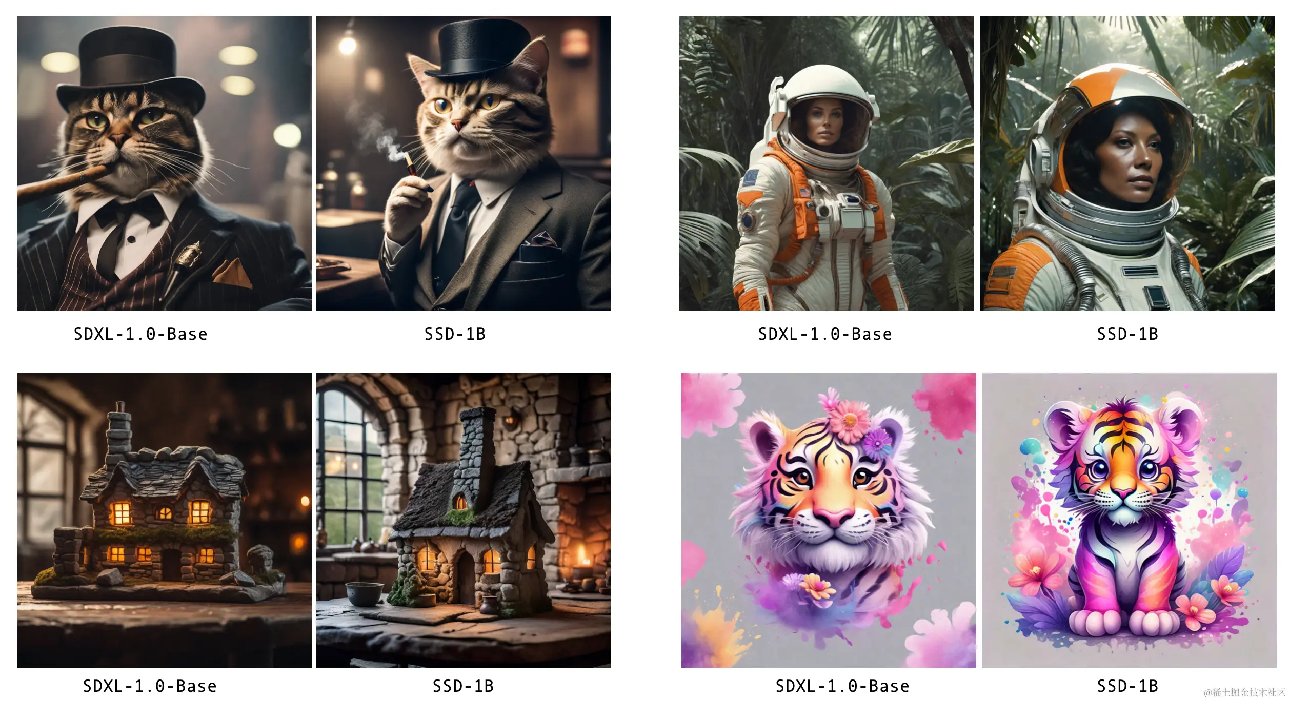 - 紧凑设计,尽管设计紧凑,体积仅为SDXL的一半,SSD-1B在视觉质量方面并没有妥协。它是优化的见证,提供高质量的视觉输出。这意味着它不会为了速度而牺牲质量,而是决定保留所有的优点。