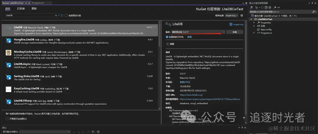 搜索LiteDB包,点击安装。
