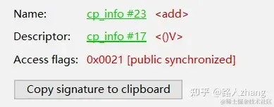 发现这个没有monitorenter 和 monitorexit 这两个指令了,而在查看该方法的class文件的结构信息时发现了Access flags后边的synchronized标识,该标识表明了该方法是一个同步方法。Java虚拟机通过该标识可以来辨别一个方法是否为同步方法,如果有该标识,线程将持有Monitor,在执行方法,最后释放Monitor。